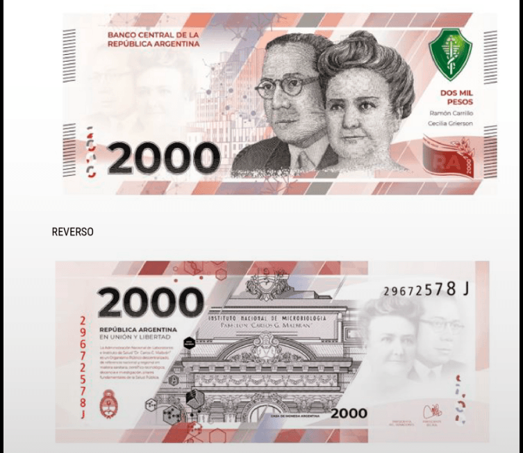 El Banco Central de la República Argentina aprobó la emisión de un billete de $2000. El mismo saldrá en el segundo semestre. El billete conmemora el desarrollo de la ciencia y de la medicina en la Argentina y tendrá como protagonistas al Instituto Malbrán, y a la Dra. Cecilia Grierson y al Dr. Ramón Carrillo.