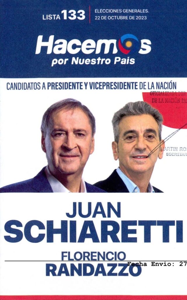 Hacemos por Nuestro País realizó cambios notables en su boleta, aumentando considerablemente la imagen de Juan Schiaretti y Florencio Randazzo en un primer plano, además de modificar colores y tipografía, y escribir todo en mayúsculas.
