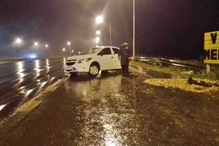 AUTOVÍA 14: Despistó en plena lluvia y terminó impactando su auto contra una columna de alumbrado