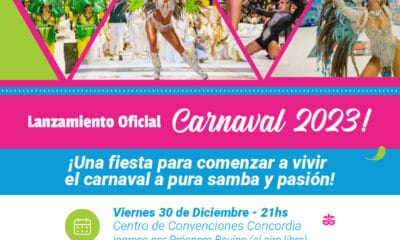 Viernes 30 de diciembre se realizará el lanzamiento oficial del Carnaval de Concordia. Será el Centro de Convenciones, al aire libre, para que todos los concordienses...