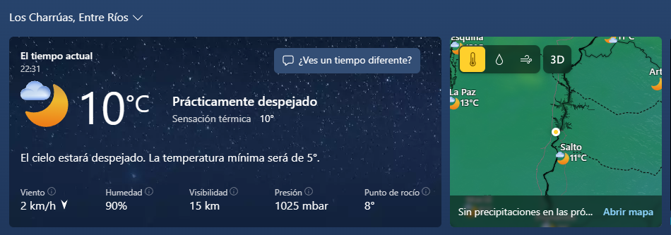 Pronóstico del tiempo en Los Charrúas, para la tarde y la noche