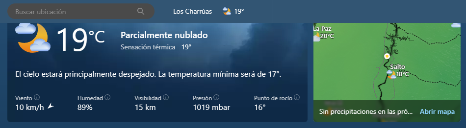 Pronóstico del tiempo en Los Charrúas para la tarde y noche