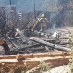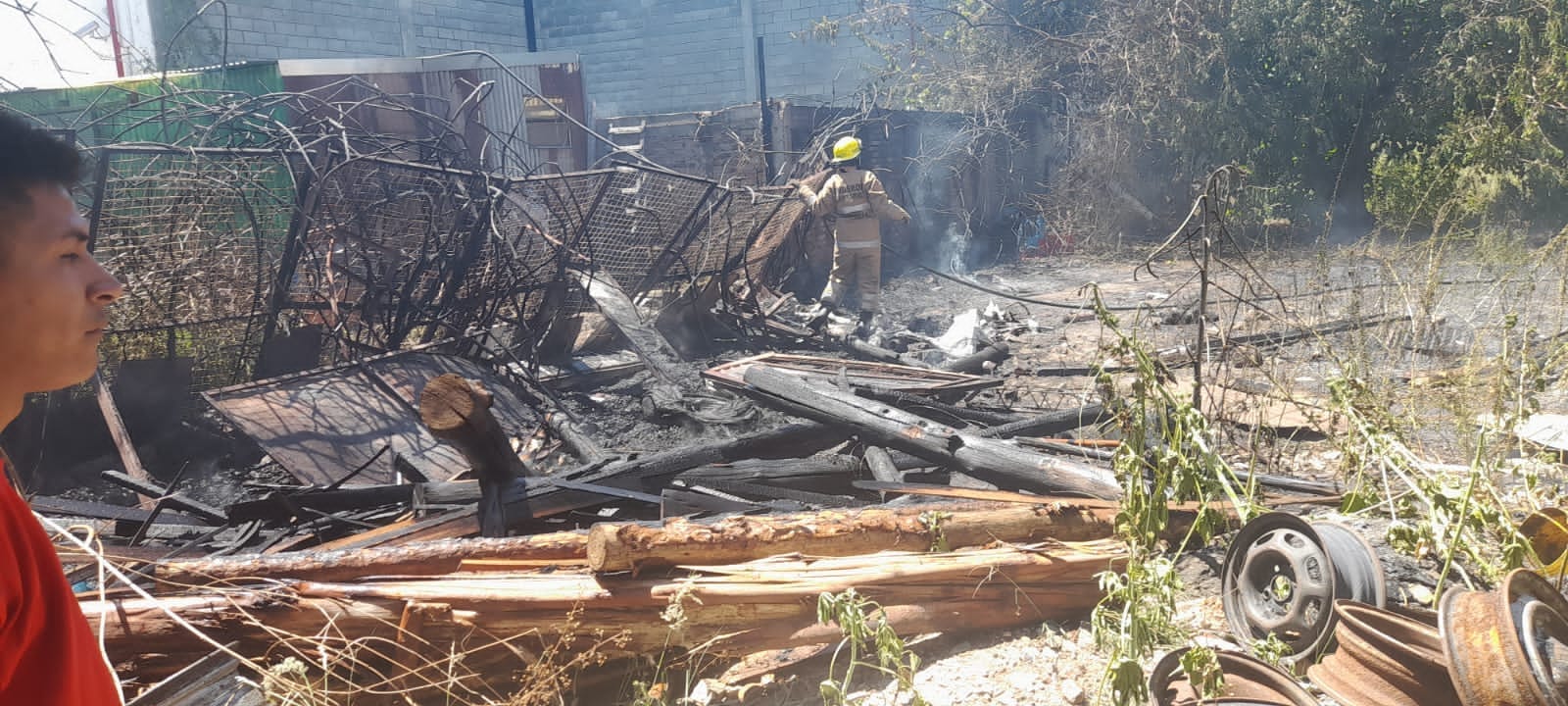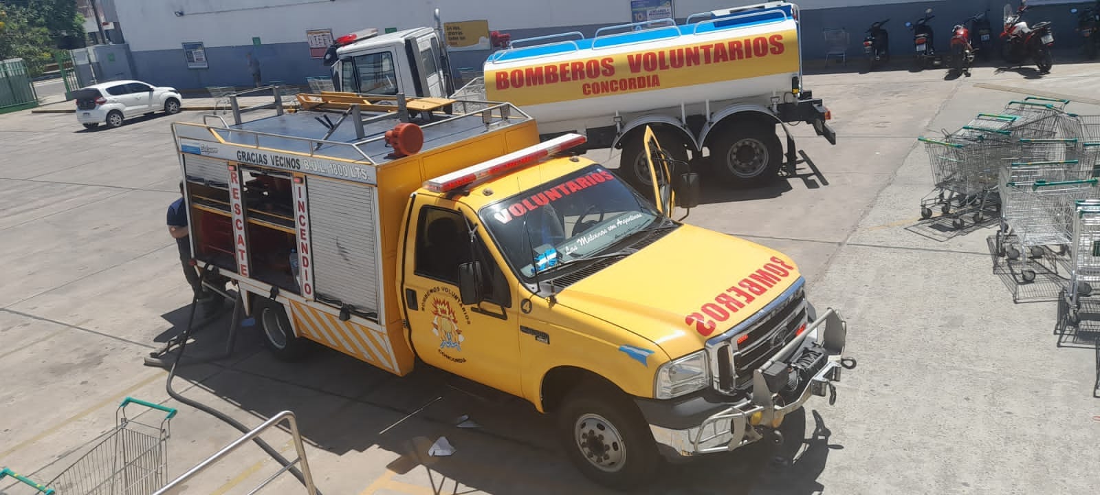 Dos dotaciones de Bomberos Voluntarios de Concordia trabajaron en Avda San Lorenzo 215 en un incendio que se desarrollo en el patio trasero de una gomería, se accedió al foco ígneo desde el Playón del supermercado VEA.