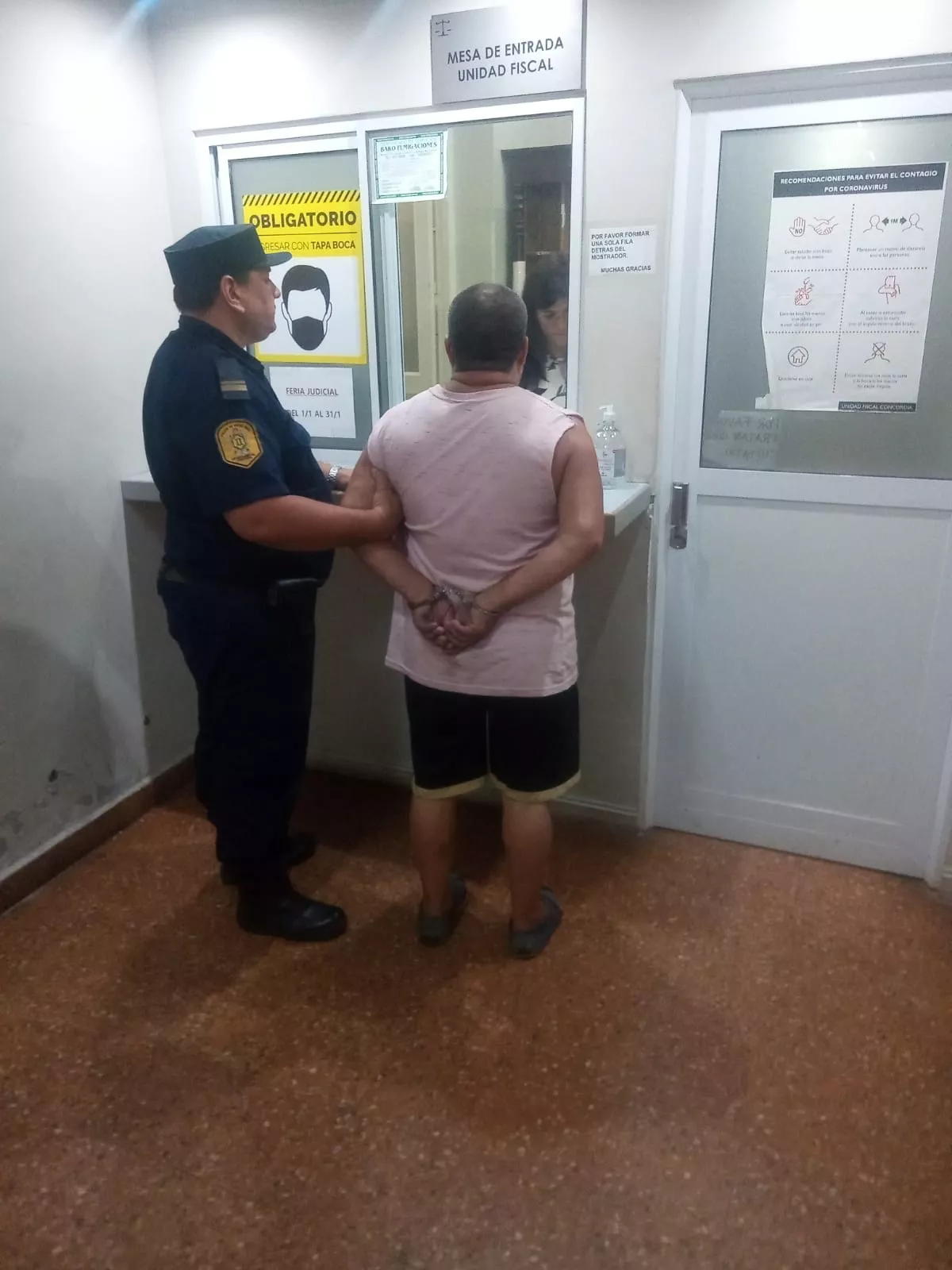 El hombre ingresó esposado y de la mano de un policía, mientras más de media docena acompañaban detrás en una exageración de extremos cuidados para una persona que lo menos que quiere es quedar en libertad para ser asesinado por una pueblada de ciudadanos que quieren justicia por mano propia.