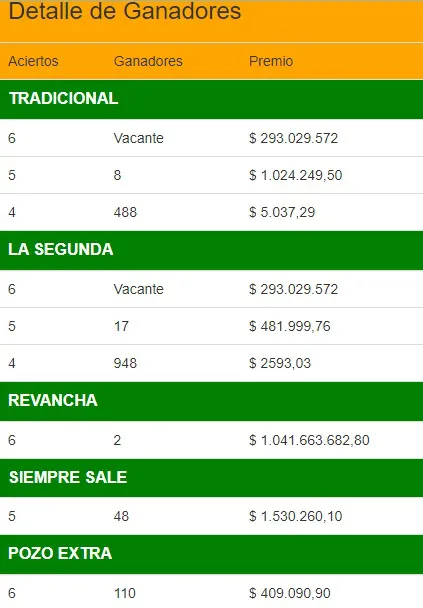 El pozo quedó vacante, acumulando para el próximo sorteo $293.029.572.